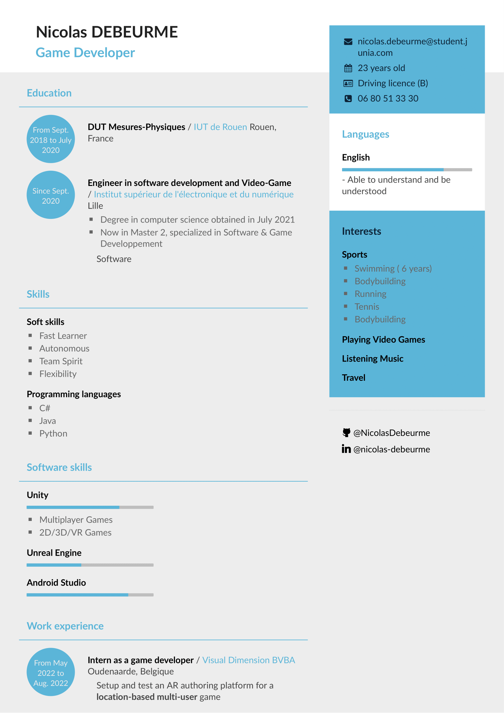 Bonjour, je suis Nicolas Debeurme, developeur logiciel et Jeux-Video. Ce site est une vitrine de mes projets et de mes compétences